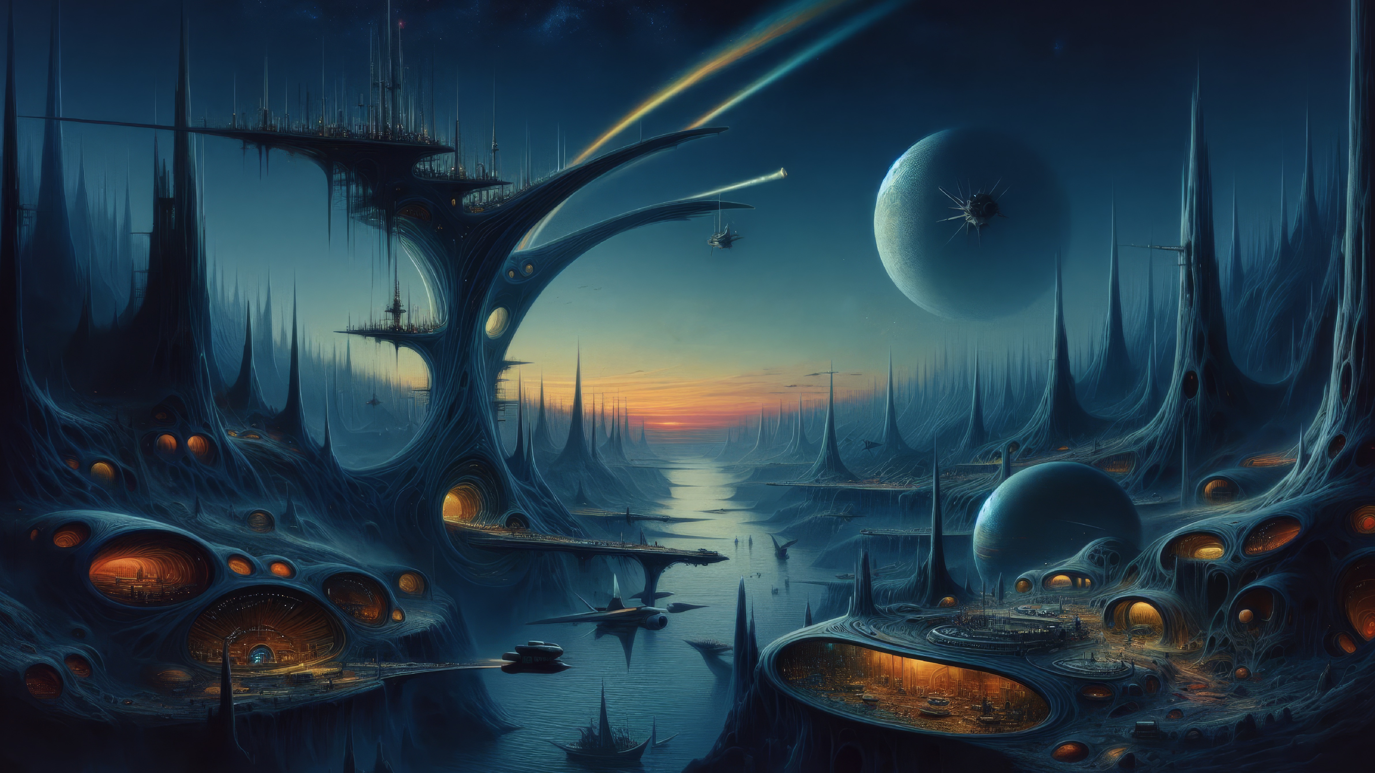 My current galleries of SciFi art are made with the assistance of AI. The general theme is alien planets, space stations and futuristic cities. The output of AI can be quite crude so the majority of work on these is done in post production, upscaling, editing, colour correction and removal of unwanted artefacts.